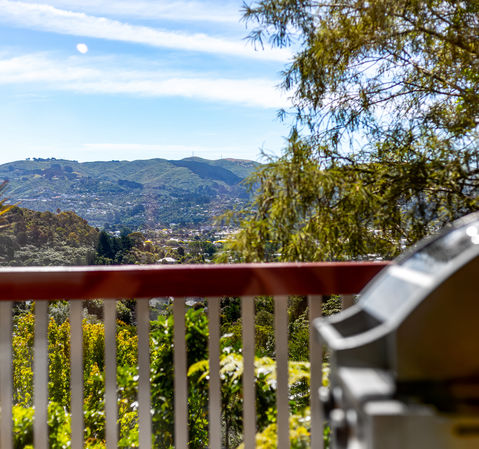 The main living level is light filled and inviting, with an open plan kitchen, dining and lounge that all capture the outlook. The kitchen is exceptionally well laid out, offering great storage with a sliding pantry and clever rotating corner cupboards to make everyday living easy. The dining and living spaces flow seamlessly to a large balcony where you can relax and enjoy the surrounding bush. A perfect spot for BBQs or relaxing with a wine and watching the sunset. A guest toilet is also located on this level for flexibility and convenience and there is a surprise "bonus" wine cellar, a perfect space for the wine enthusiast or providing excellent additional storage.